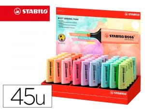 Rotulador stabilo boss fluorescente 70 pastel expositor de 45 unidades colores surtidos