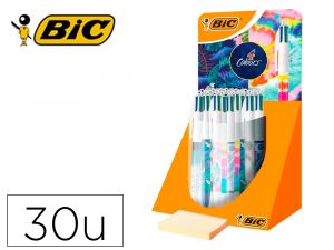 Boligrafo bic cuatro colores decorados punta de 1 mm expositor de 30 unidades