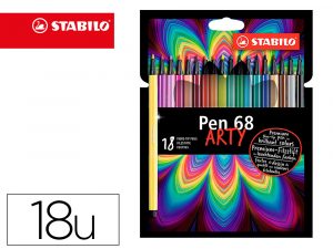 Rotulador stabilo acuarelable pen 68 estuche carton de 18 unidades colores surtidos