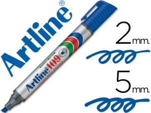 Rotulador artline marcador permanente ek-90 azul punta biselada 5 mm papel metal y cristal