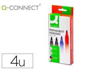 Rotulador q-connect marcador permanente estuche de 4 colores surtidos punta redonda 3.0 mm