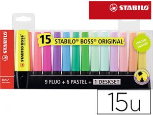 Rotulador stabilo boss fluorescente 70 blister de 15 unidades colores surtidos
