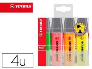 Rotulador stabilo boss fluorescente 70 pastel estuche de 4 unidades colores surtidos