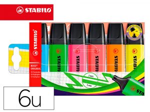 Rotulador stabilo boss fluorescente 70 estuche de 6 unidades colores surtidos