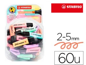 Rotulador stabilo boss fluorescente 70 pastel expositor bombonera de 60 unidades colores surtidos