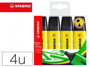 Rotulador stabilo boss fluorescente 70 amarillo estuche de 4 unidades
