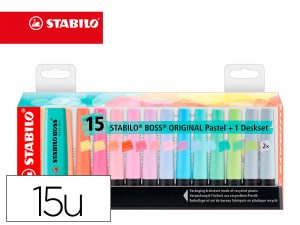 Rotulador stabilo boss fluorescente 70 pastel deskset estuche de 15 unidades colores surtidos
