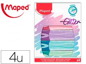 Rotulador maped fluorescente peps pastel con glitter estuche de 4 unidades colores surtidos