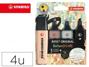 Rotulador stabilo boss pastel fluorescente 70 nature colors estuche de 4 unidades colores surtidos