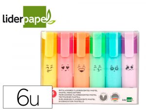 Rotulador liderpapel fluorescente pastel punta biselada estuche de 6 unidades colores surtidos