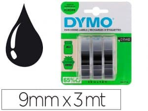 Cinta dymo 3d 9mm x 3mt para rotuladora omega/junior color negro blister 3 unidades