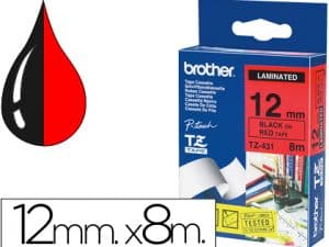 Cinta brother tze431 laminada negro-rojo 12mm x 8mts