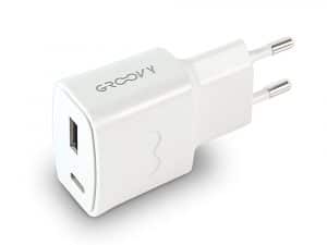 Cargador pared groovy 1 usb + 1usb-c color blanco