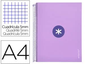 Cuaderno espiral liderpapel a4 micro antartik tapa forrada120h 100 gr cuadro 5mm 5 banda4 taladros color lavanda