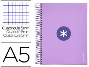 Cuaderno espiral liderpapel a5 micro antartik tapa forrada120h 90 gr cuadro 5mm 5 banda 6 taladros color lavanda