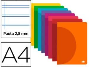 Libreta liderpapel 360 tapa de plastico a4 48 hojas 90g/m2 pauta 5 2,5mm con margen colores surtidos