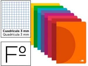 Libreta liderpapel 360 tapa de plastico a4 48 hojas 90g/m2 cuadro 3 mm con margen colores surtidos