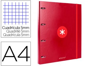 Carpeta con recambio liderpapel antartik a4 cuadro 5mm forrada 4 anillas 25mm redondas color frambuesa