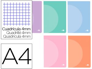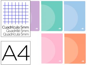 Libreta liderpapel 360 tapa de plastico a4 48 hojas 90g/m2 cuadro 4 mm con margen colores pastel surtidos
