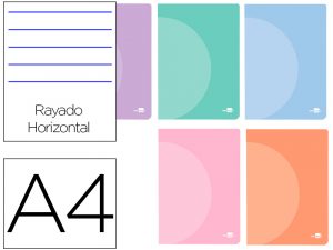 Libreta liderpapel 360 tapa de plastico a4 48 hojas 90g/m2 horizontal con doble margen colores pastel