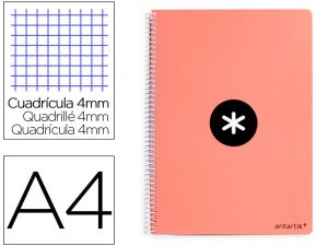 Cuaderno espiral liderpapel a4 antartik tapa dura 80h 90gr cuadro 4mm con margen color coral