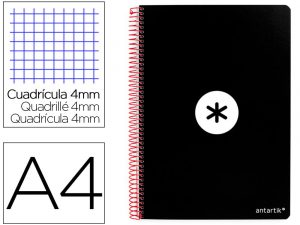Cuaderno espiral liderpapel a4 antartik tapa dura 80h 90gr cuadro 4mm con margen color negro