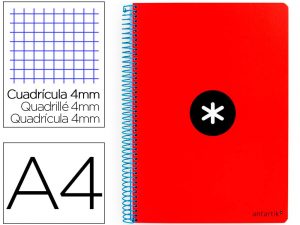 Cuaderno espiral liderpapel a4 antartik tapa dura 80h 90gr cuadro 4mm con margen color rojo