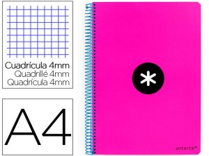 Cuaderno espiral liderpapel a4 antartik tapa dura 80h 90gr cuadro 4mm con margen color rosa fluor