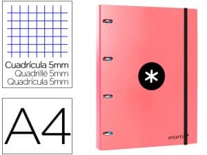 Carpeta con recambio liderpapel antartik a4 cuadro 5mm forrada 4 anillas 25mm redondas color coral