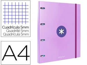 Carpeta con recambio liderpapel antartik a4 cuadro 5mm forrada 4 anillas 25mm redondas color lavanda
