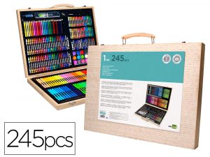 Estuche de pintura liderpapel madera 245 piezas maletin 49×36,6×4,5 cm