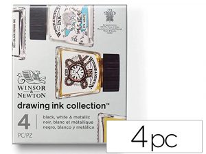 Tinta caligrafica winsor&newton set de 4 botes colores metalicos 14 ml
