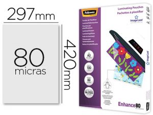Bolsa de plastificar fellowes brillo din a3 80 micras pack 100 unidades