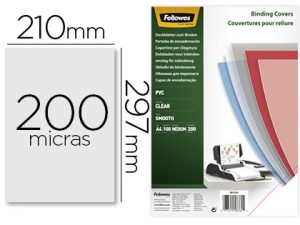 Tapa de encuadernacion fellowes din a4 pvc transparente cristal 200 micras pack de 100 unidades