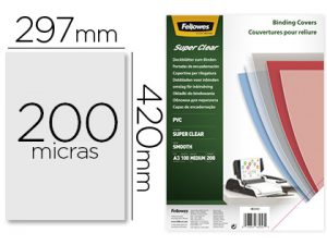 Tapa de encuadernacion fellowes din a3 pvc transparente cristal 200 micras pack de 100 unidades