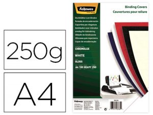 Tapa de encuadernacion fellowes din a4 carton brillo blanco chromolux 250 gr pack de 100 unidades