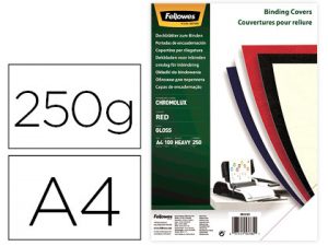 Tapa de encuadernacion fellowes din a4 carton brillo rojo chromolux 250 gr pack de 100 unidades