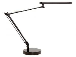 Lampara de escritorio unilux mambo led 5,6w doble brazo articulado abs y aluminio negro base 19 cm diametro