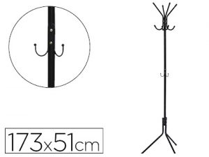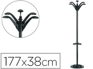 Perchero metalico unilux accueil pie 8 colgadores con paraguero y bandeja goteo negro 177×38 cm