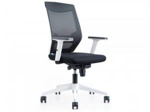 Silla rocada de oficina con brazos regulables y respaldo malla negro tapizada en tela ignifuga negro color blanco