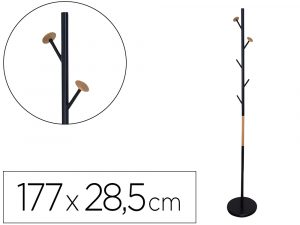 Perchero metalico q-connect negro con detalles de madera 5 colgadores 177×28,5 cm