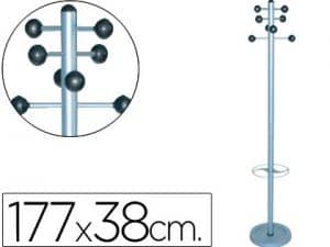 Perchero metalico unilux accueil pie 8 colgadores con paraguero y bandeja goteo gris metalizado 177×38 cm