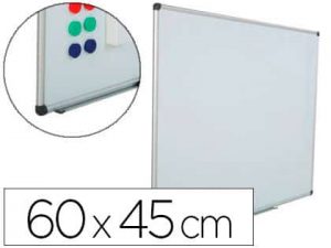 Pizarra blanca rocada acero vitrificado magnetico marco aluminio y cantoneras pvc 60×45 cm incluye bandeja para