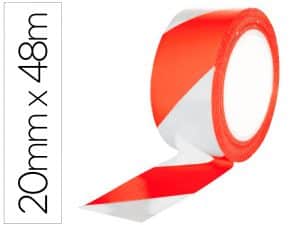 Cinta adhesiva q-connect de seguridad rojo y blanco 20 mt x 48 mm