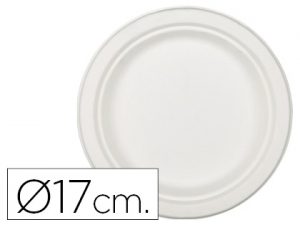Plato de fibra natural nupik biodegradable blanco 17 cm de diametro apto microondas paquete de 50 unidades