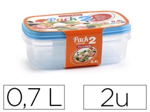 Fiambrera plasticforte transparente tapa color 0,7 litros pack 2 unidades