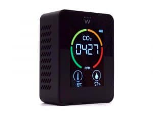 Medidor de aire orium quaelis 20 medidor de co2 y cov superficie 30 m2 pantalla lcd color blanco 8×2,5 x 8 cms