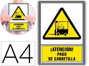 Pictograma archivo 2000 atencion paso de carretilla pvc amarillo luminiscente 210×297 mm