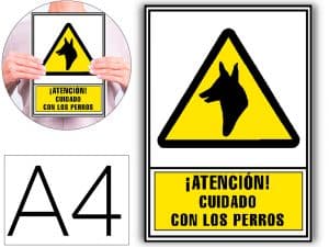 Pictograma archivo 2000 atencion cuidado con los perros pvc amarillo luminiscente 210×297 mm