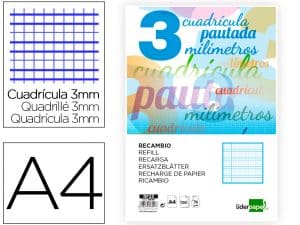 Recambio liderpapel a4 pautaguia 100 hojas 75 g cuadriculado pautado 3 mm con margen 4 taladros